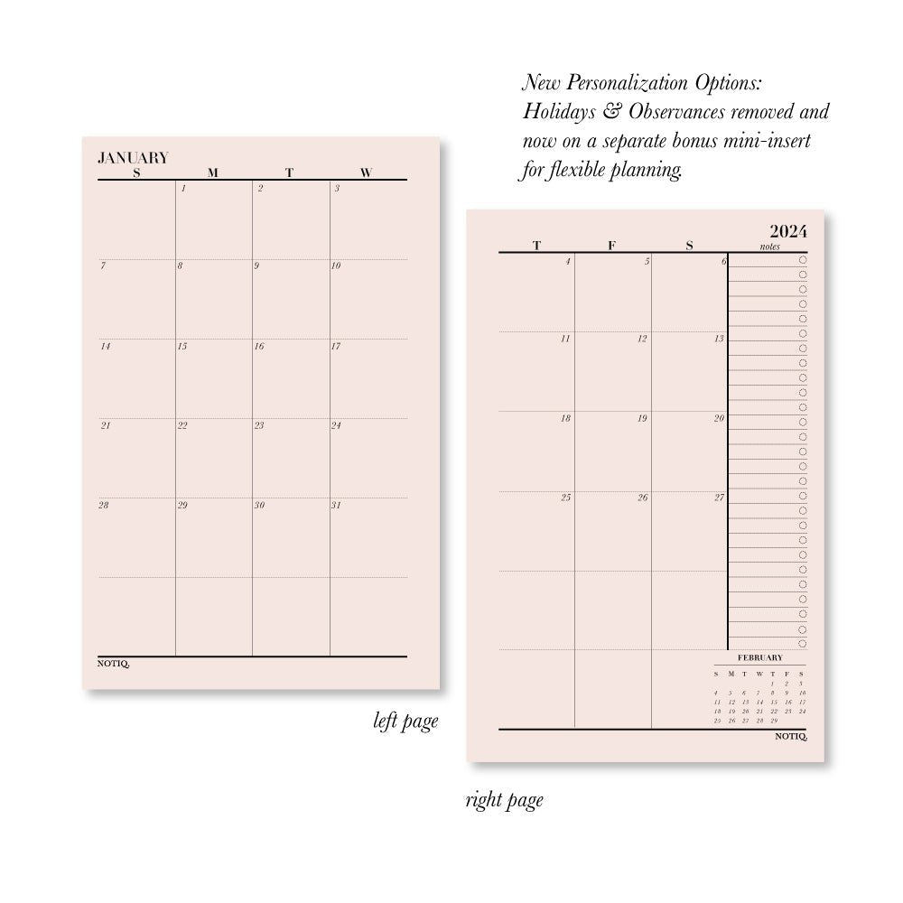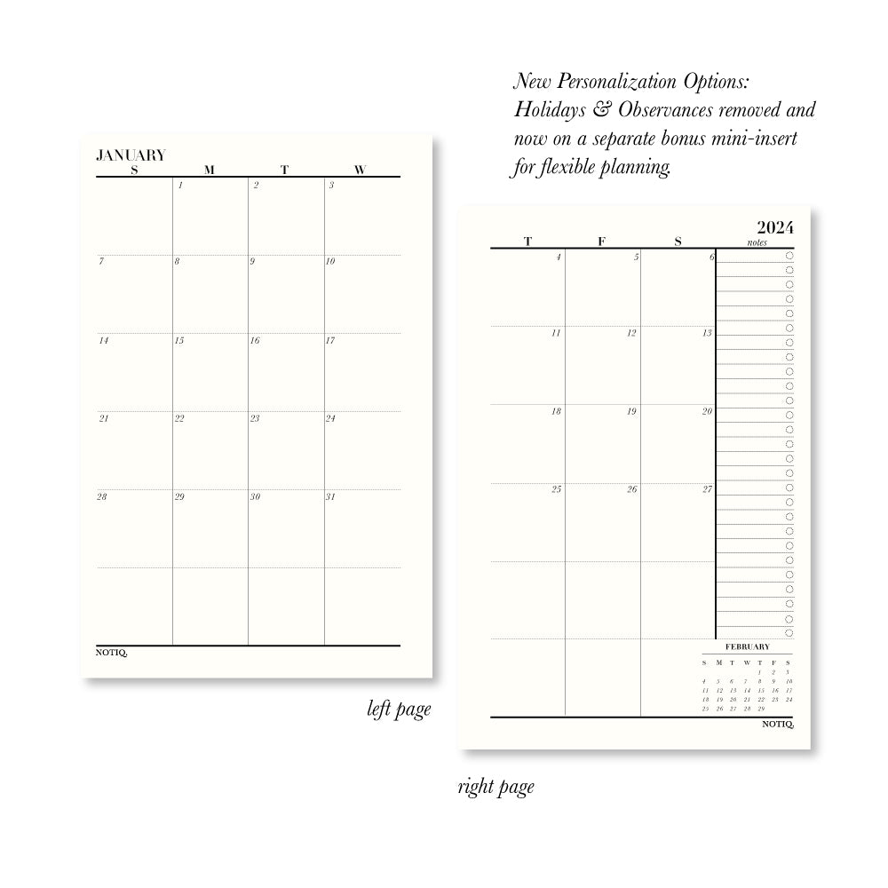 Planner Inserts | 2024 Monthly Brief Calendar Planner Inserts | NOTIQ